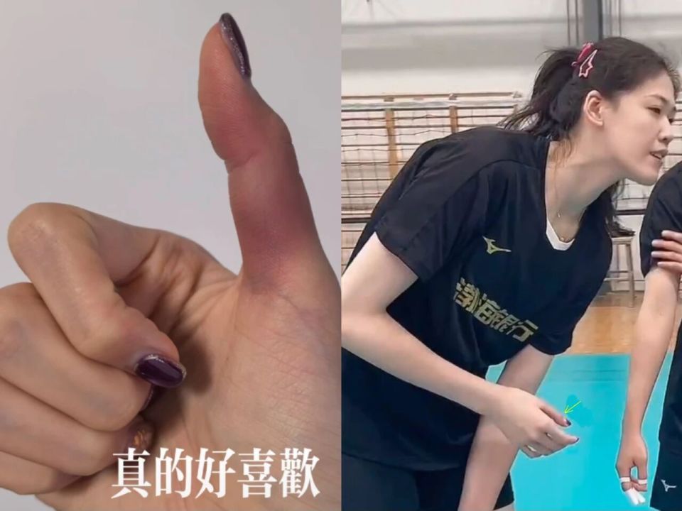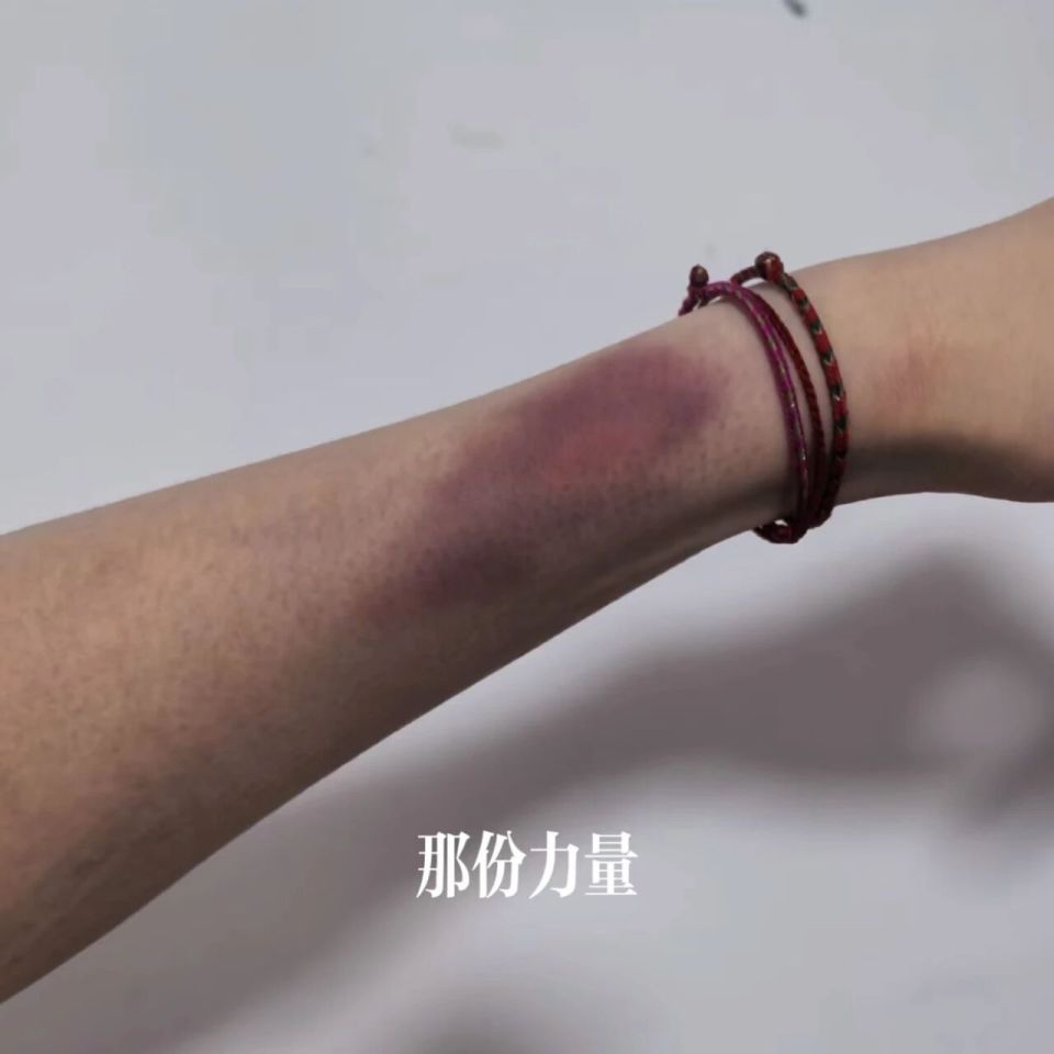 根据分享的照片,除了手指挫伤之外,李盈莹手臂内侧大片瘀伤呈深紫色,颜色扩散面积极大,显然是长时间接球、训练留下的撞击痕迹。这种伤,比较常出现在自由人和主攻手频繁垫球、接强力发球之后,皮下毛细血管破裂所致,虽不致命,但疼痛感也会影响日常活动。